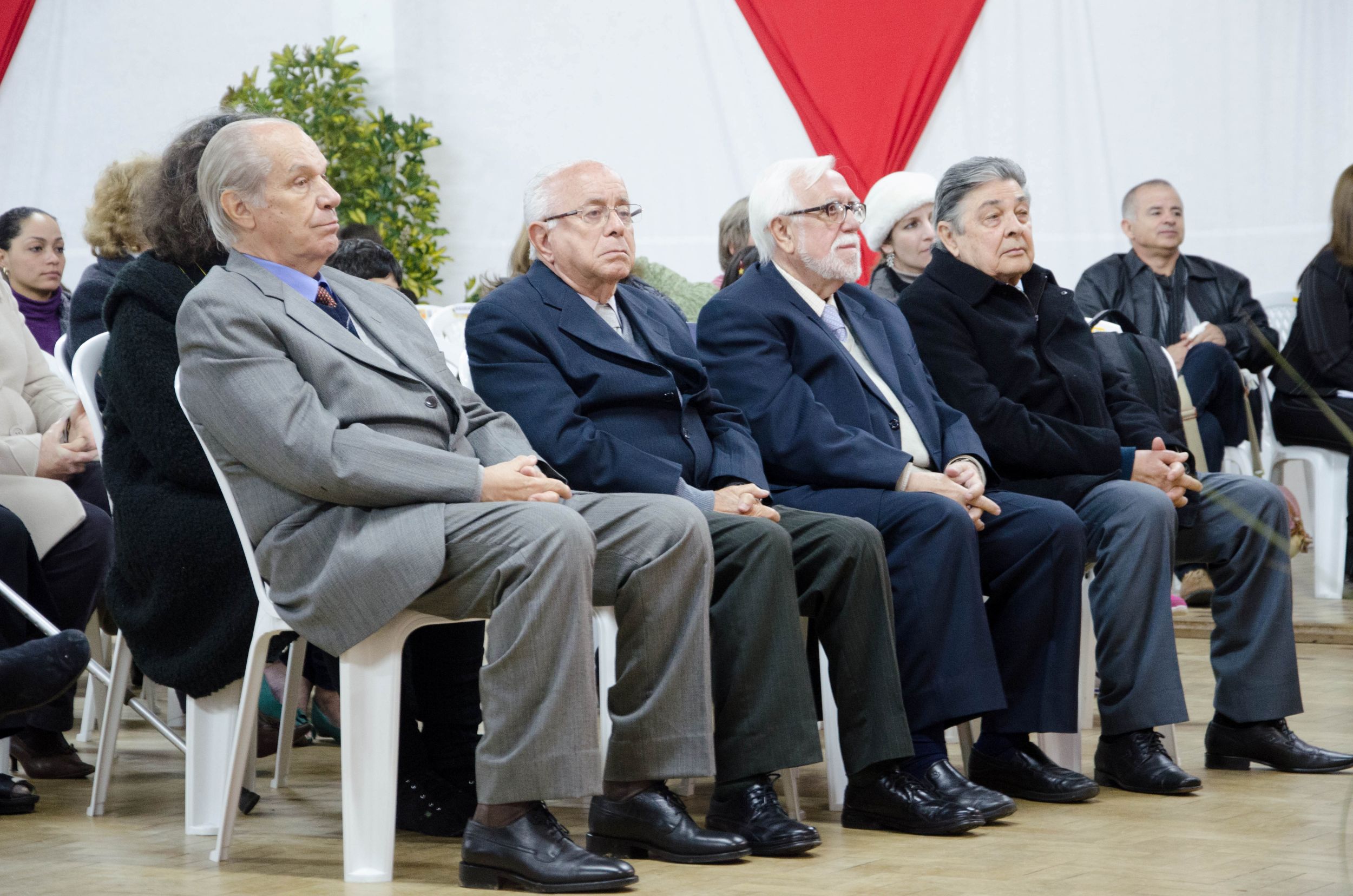 Registro da entrega da Comenda São Bonifacence Egon Francisco Willibald Schaden ao professor João Baptista pelo vereador Odeval Vanroo. (Foto: Rodrigo Silva, 2013. Arquivo Instituto Egon Schaden).