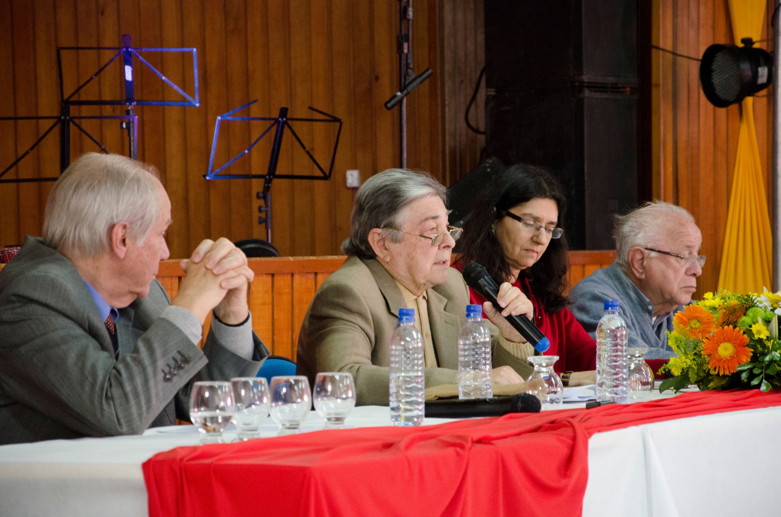 Registros do Seminário Internacional Cem anos de Egon Schaden. Da esquerda para a direita, Júlio Cézar Melatti, João Baptista Borges Pereira, Carmem Silvia Rial e Roque Barros Laraia. (Foto: Rodrigo Silva, 2013. Arquivo Instituto Egon Schaden).